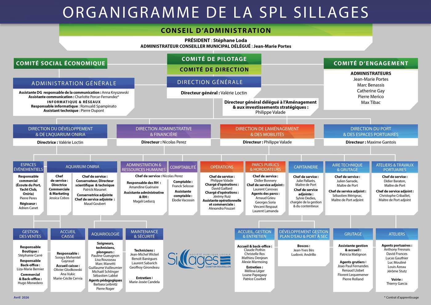 SILLAGES, c’est une Société Publique Locale (SPL) qui fonctionne sous le contrôle d’un Conseil d’Administration composé de :
